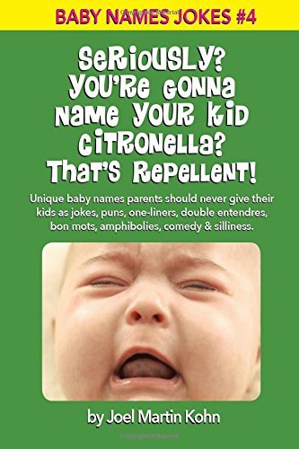 Seriously? You're Gonna Name Your Kid Citronella? That's Repellent!: Unique baby names parents should never give their kids as jokes, puns, ... & silliness.: Volume 4 (Baby Names Jokes) by Joel Martin Kohn (2015-06-23) Free PDF ebook download ... The Seriously? You're Gonna Name Your Kid Citronella? That's Repellent!: Unique baby names parents should never give their kids as jokes, puns, ... & silliness.: Volume 4 (Baby Names Jokes) by Joel Martin Kohn (2015-06-23) in ... The Seriously? You're Gonna Name Your Kid Citronella? That's Repellent!: Unique baby names parents should never give their kids as jokes, puns, ... & silliness.: Volume 4 (Baby Names Jokes) by Joel Martin Kohn (2015-06-23) PDF ePub ...