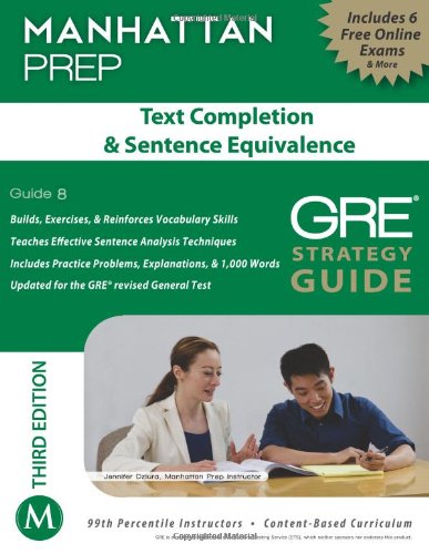 Text Completion & Sentence Equivalence GRE Strategy Guide (Manhattan Prep Strategy Guides) (Manhattan Prep GRE Strategy Guides) Kindle edition .... download it once and read it on your Kindle device, PC, phones or tablets. Use features like bookmarks, note taking and highlighting while reading Text Completion & Sentence Equivalence GRE Strategy Guide (Manhattan Prep Strategy Guides) (Manhattan Prep GRE Strategy Guides).